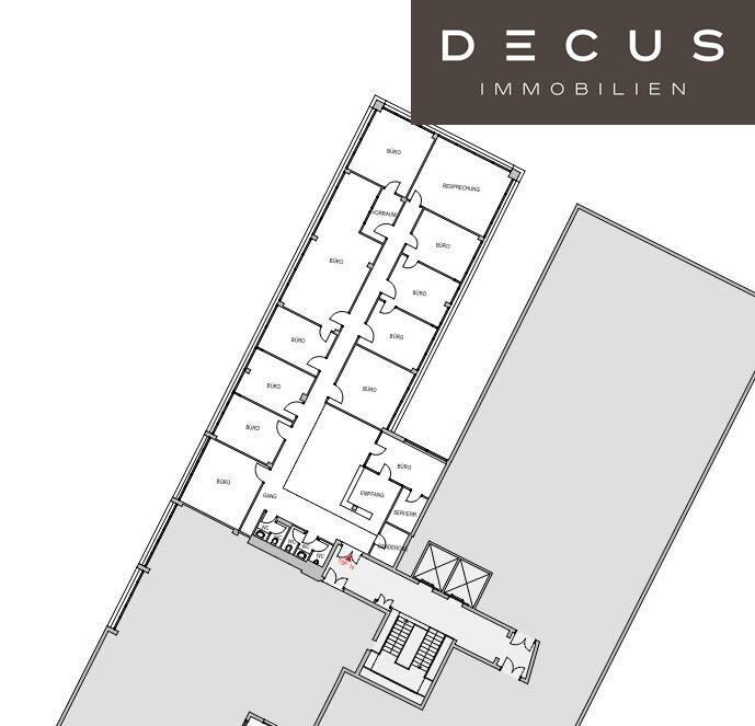 Die Büros im zeitlosen Design sind mit Raumkühlung ausgestattet und ab einer Größe von ca. 26 m² verfügbar (Kleinbüros 1 Raum, Sanitär am Gang).