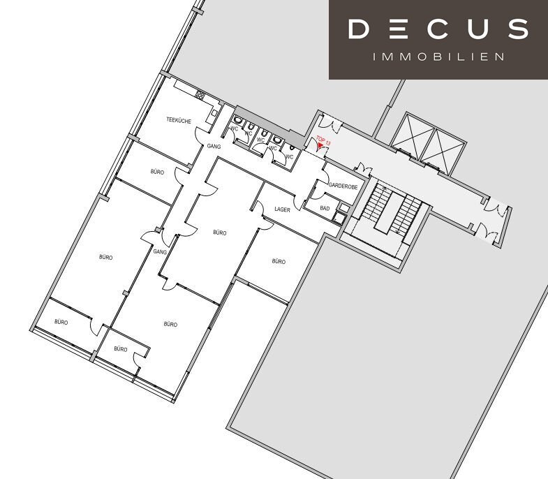 Die Büros im zeitlosen Design sind mit Raumkühlung ausgestattet und ab einer Größe von ca. 26 m² verfügbar (Kleinbüros 1 Raum, Sanitär am Gang).