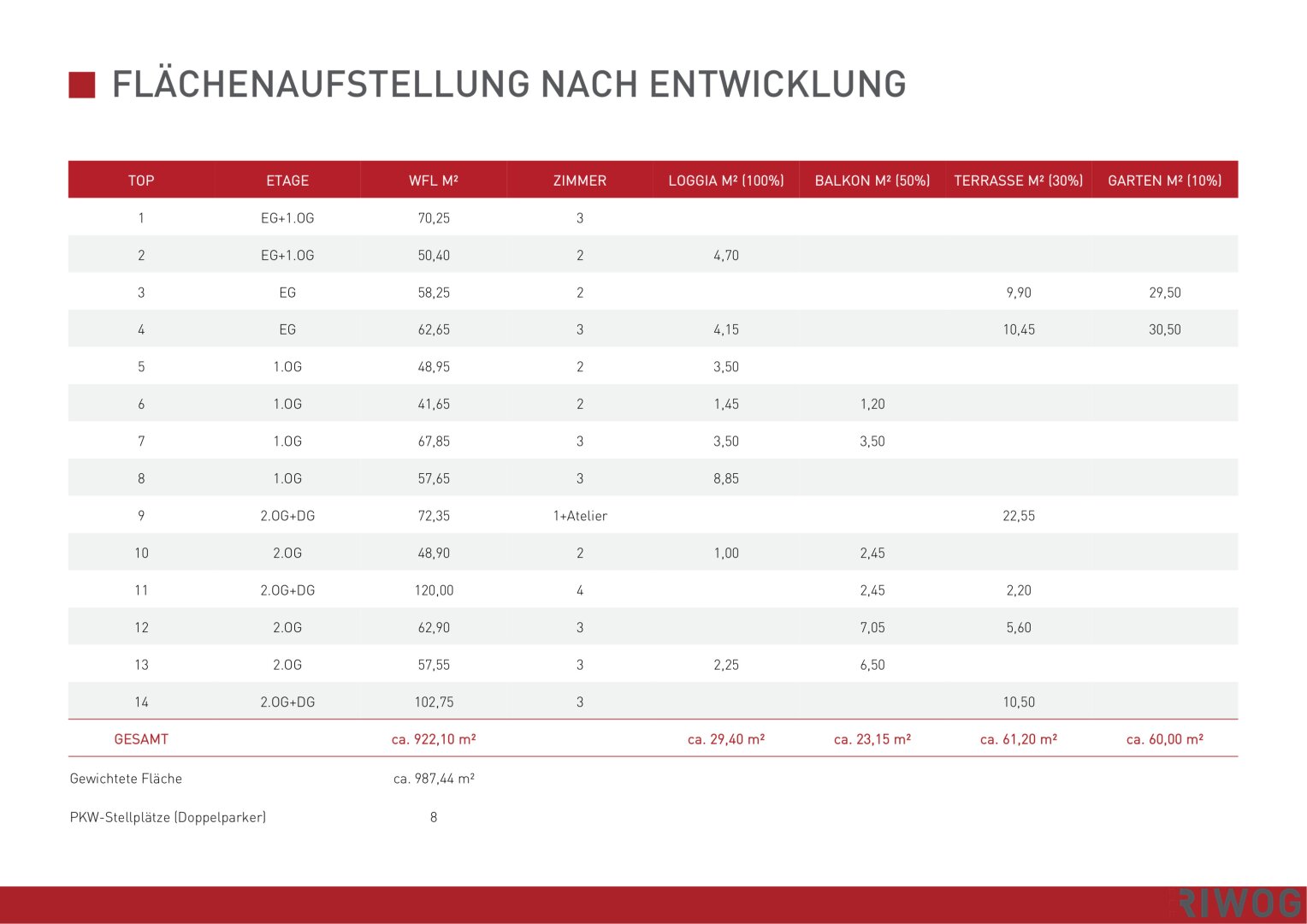 * Erzielbare gewichtete Fläche nach Entwicklung
