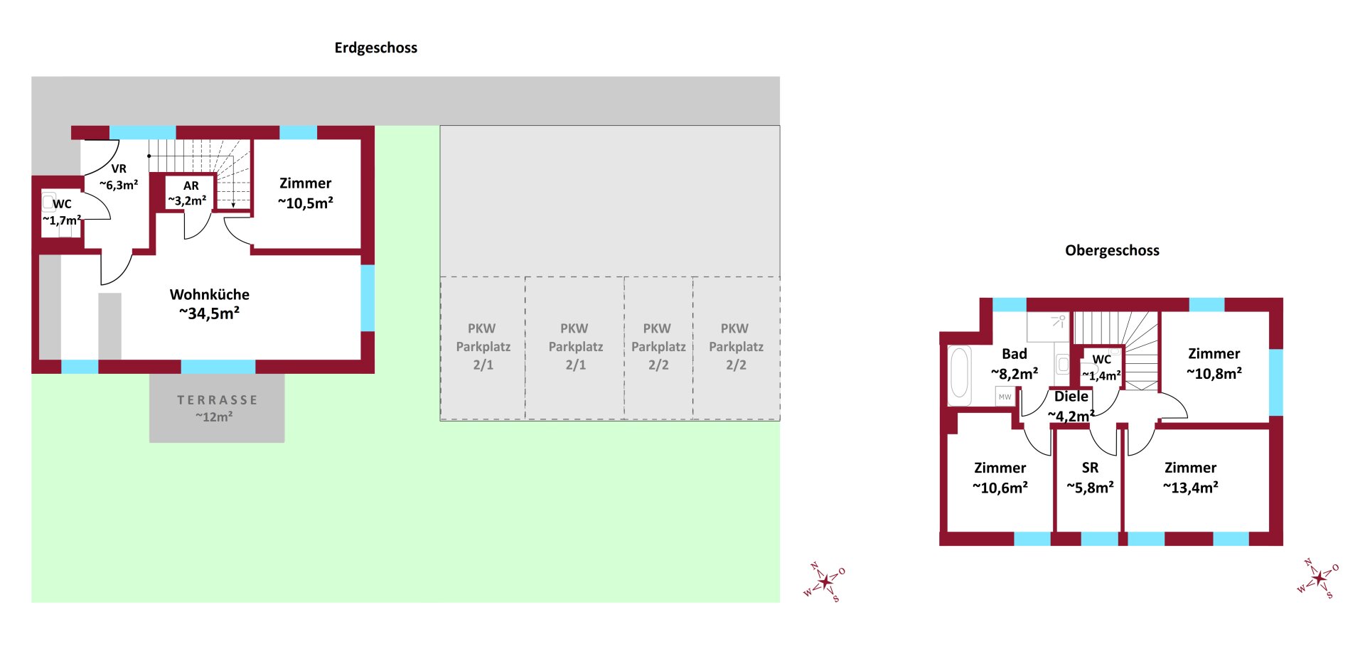 Bei der Planung und Gestaltung dieser 3 innovativen Doppelhäuser wurde der Fokus auf die Bedürfnisse des Menschen gesetzt – entstanden sind 6 Eigenheime mit exzellenten Grundrissen, geräumigen Außenflächen und Top-Grundausstattungen.