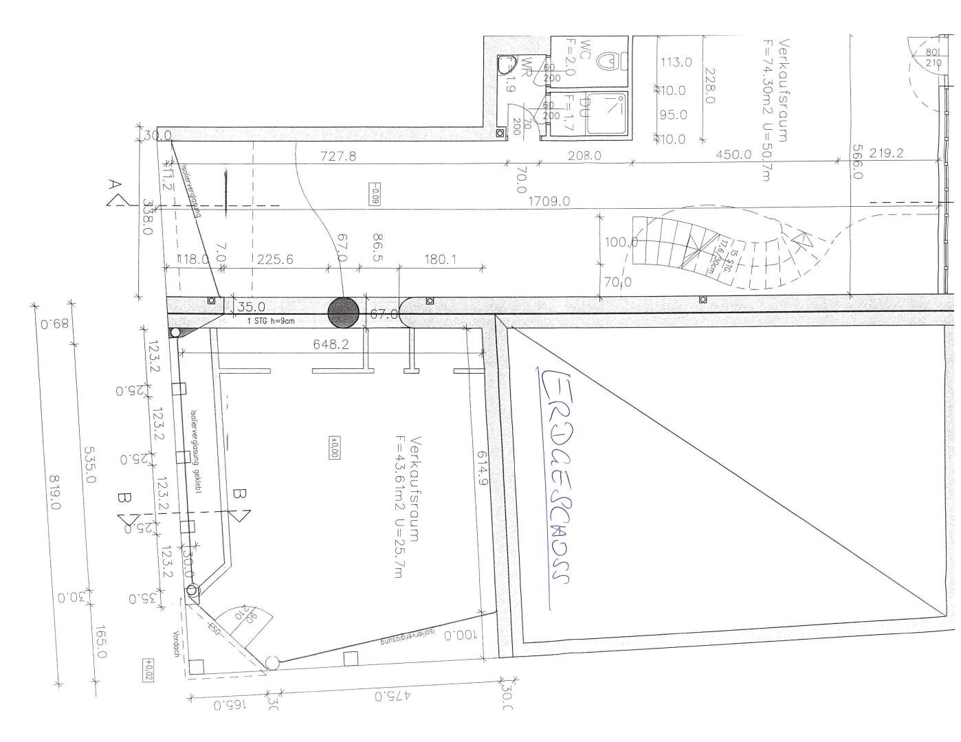 Die angebotenen Geschäftsflächen im Ausmaße von insgesamt 186 m² befinden sich in an der Ecke Postgasse und Kirchgasse. Diese beiden Gassen befinden sich im historischen Stadtkern der Stadt und verbinden einerseits den Bereich der Ossiacher Bundesstraße (Postamt, McDonalds, Fitness-Center Injoy) mit dem Hauptplatz der Stadt St. Veit an der Glan