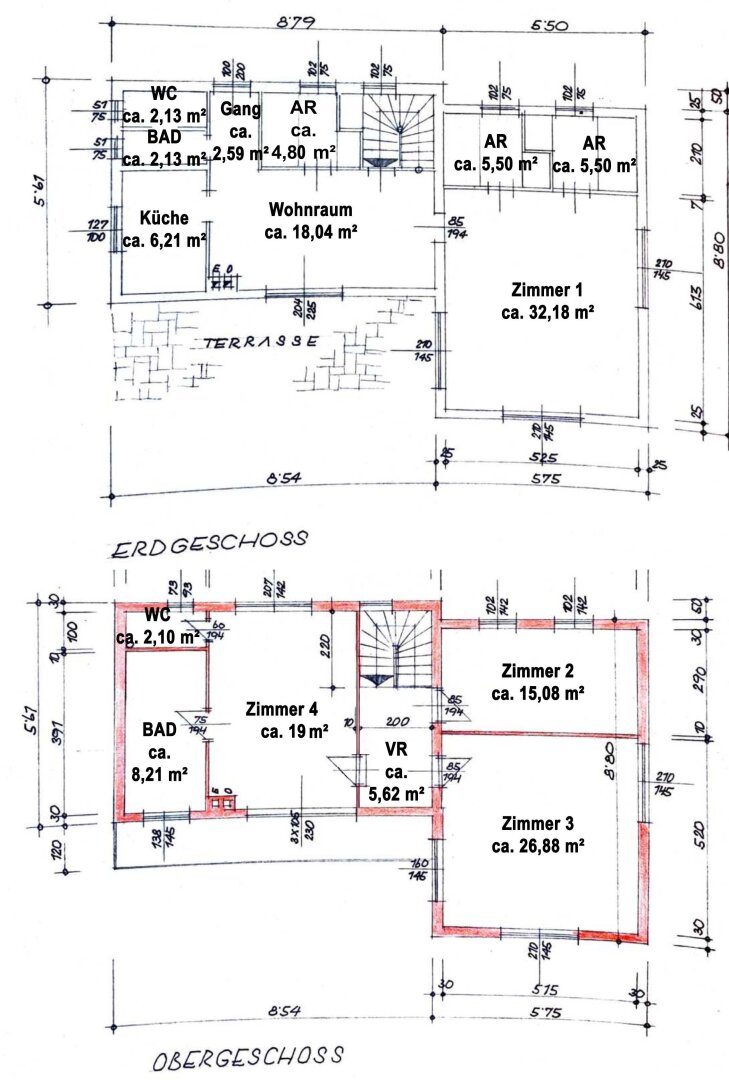 Die nach Süden ausgerichtete Liegenschaft wurde ca. im Jahre 1962 als Wochenendhaus errichtet, befindet sich im Ortsteil „Hutten“ in absoluter Grünruhelage mit schönem Ausblick und ist sowohl nördlich als auch südlich unverbaubar. Um Wohnfläche zu gewinnen, erfolgten nachträglich der Zubau am Ostflügel und ca. im Jahre 1972 die Aufstockung des Hauses. Eine