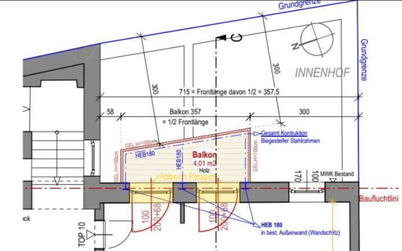Besonders hervorzuheben ist die bestehende Baubewilligung für einen Balkon, die die