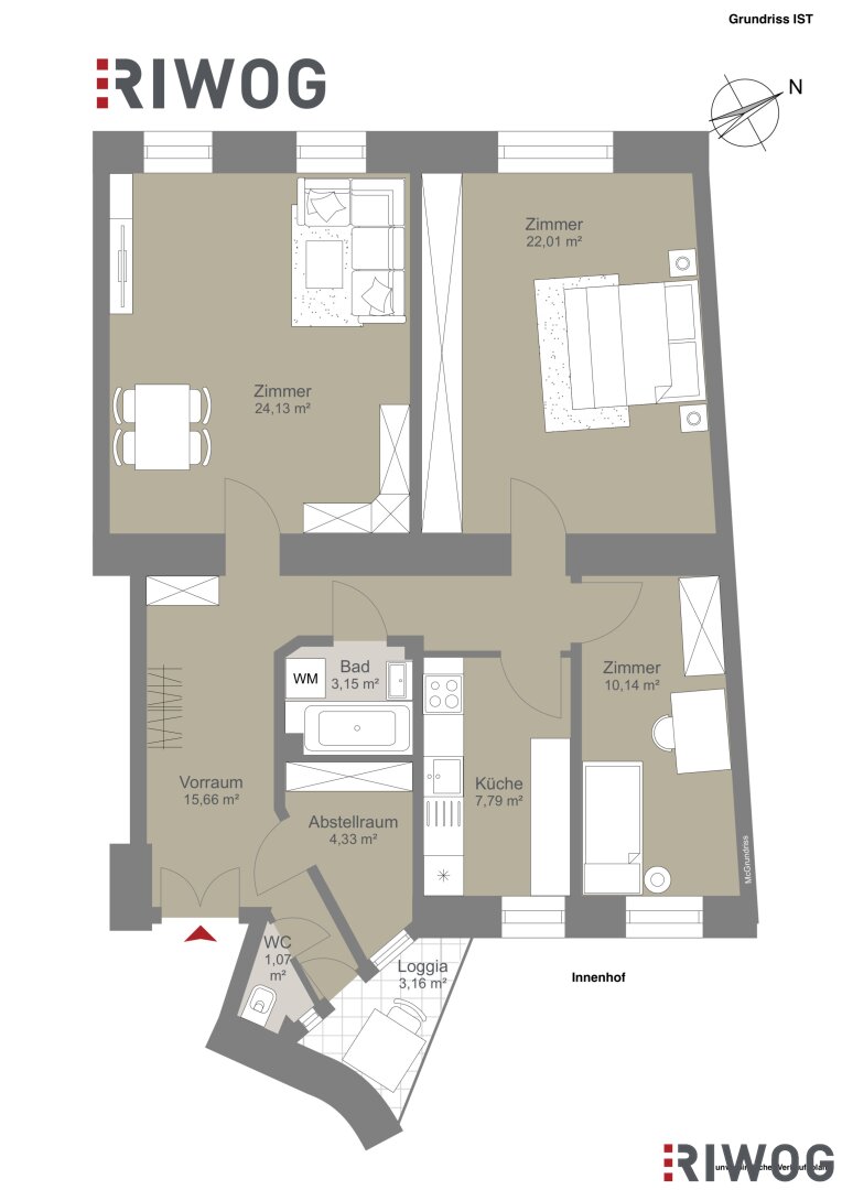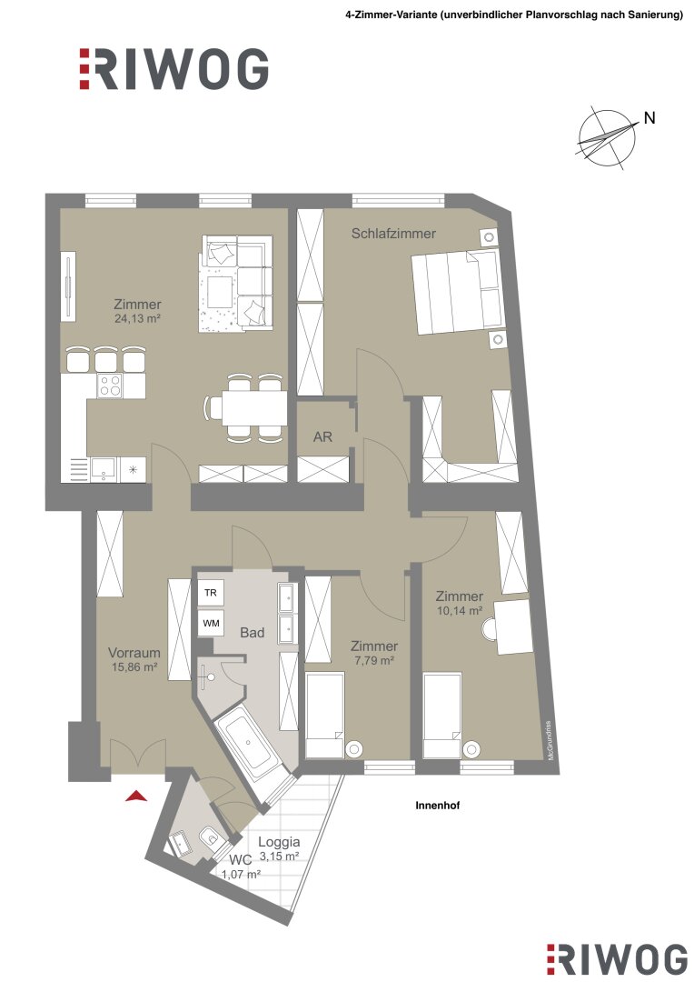 Zum Verkauf gelangt eine Altbauwohnung mit Sanierungsbedarf mit ca. 91,6 m² Wohnnutzfläche (inkl. Innenhof-Loggia). Gelegen ist die südost/nordwest ausgerichtete Wohnung in der 2. Etage einer gepflegten Liegenschaft mit reichlich gegliederter eingangsseitiger Fassade. Der aktuelle Grundriss mit 3 Zimmern und separater Küche bietet Potenzial zur 4-Zimmer-Wohnung (siehe unverbindlicher Planvorschlag). Sämtliche Zimmer/Räume sind separat begehbar und