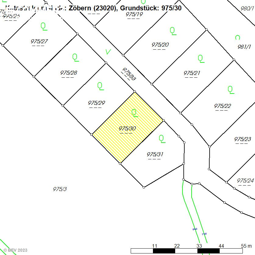 Dieser sonnige ca. 600 m² große Baugrund befindet sich in einer ruhigen Sackgasse mitten im Ortskern von Zöbern.