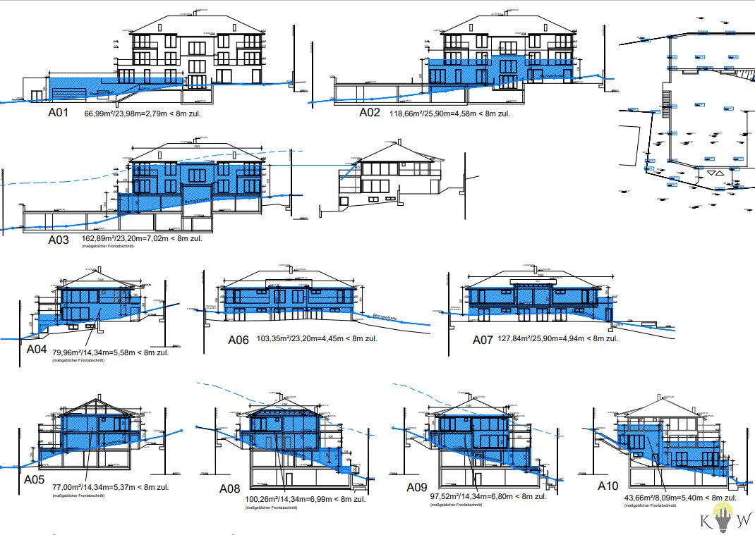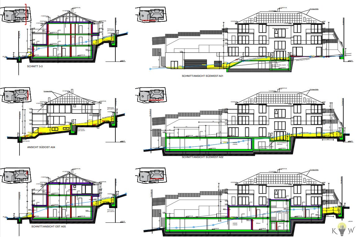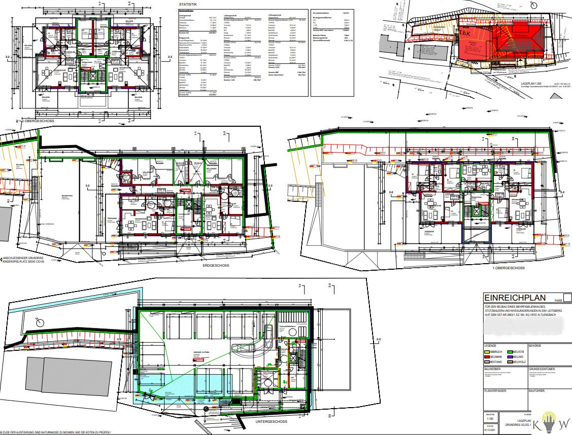 Zu Verkaufen gelangt dieses bewilligte Bauprojekt für 7 Wohnungen und 14 PKW-Stellplätzen.