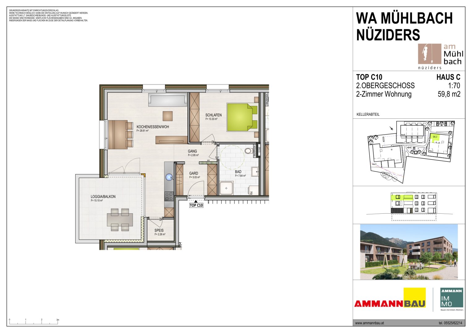 Ammann Wohnbau errichtet in Nüziders Landstraße in gewohnter Wohnqualität Wohnungen zum wohlfühlen. Die Wohnanlage besticht durch moderne, zeitlos schöne Architektur. 22 Einheiten in verschiedenen Gebäuden versprechen ein ungewohnt wohliges Wohngefühl einer Wohnanlage. Die Wohnungen sind über einen Personenlift barrierefrei zugänglich. Die Wohnungen im Erdgeschoss verfügen über einen eigenen Gartenanteil. Stellplätze