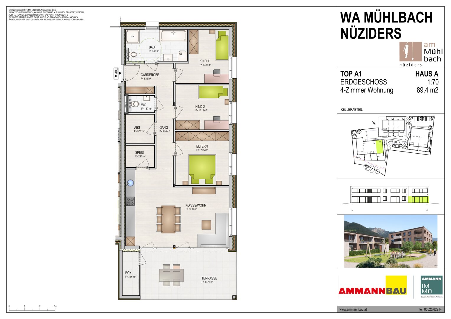 Ammann Wohnbau errichtet in Nüziders Landstraße in gewohnter Wohnqualität Wohnungen zum wohlfühlen. Die Wohnanlage besticht durch moderne, zeitlos schöne Architektur. 22 Einheiten in verschiedenen Gebäuden versprechen ein ungewohnt wohliges Wohngefühl einer Wohnanlage. Die Wohnungen sind über einen Personenlift barrierefrei zugänglich. Die Wohnungen im Erdgeschoss verfügen über einen eigenen Gartenanteil. Stellplätze