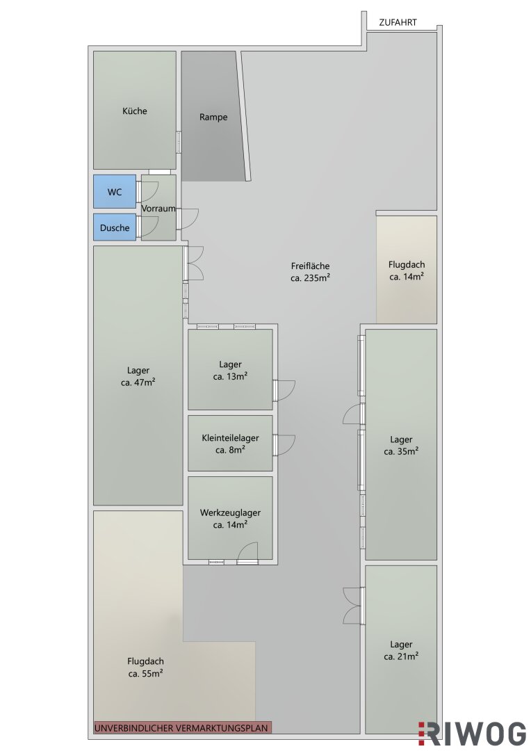 Das in einem Hof gelegene Grundstück hat ein Gesamtausmaß von ca. 510m², wovon ca. 254m² auf die Gebäude entfallen und somit ca. 256m² befestige Freifläche zur Verfügung