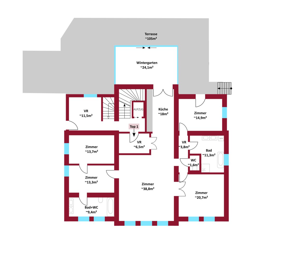 Balkon/Terrassen - Fläche: 104