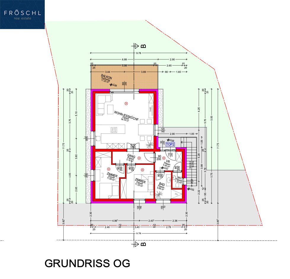 Ein detaillierter Projektplan (Bebauungsstudie) für ein massiv gebautes Objekt mit einer Nutzfläche von etwa 150 m² liegt bereits vor. Das geplante Objekt umfasst außerdem 3 PKW-Abstellplätze. Der Zugang zur oberen Wohneinheit