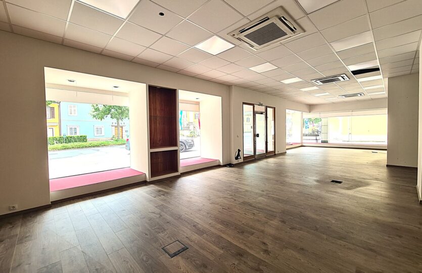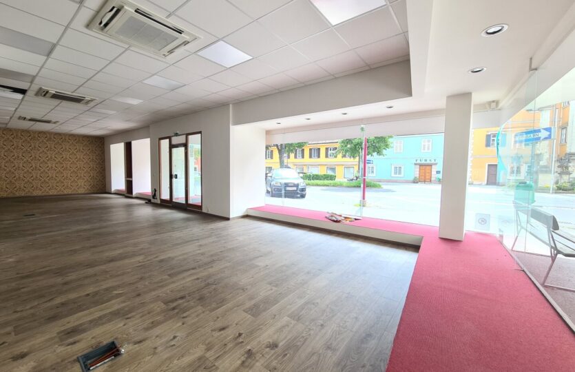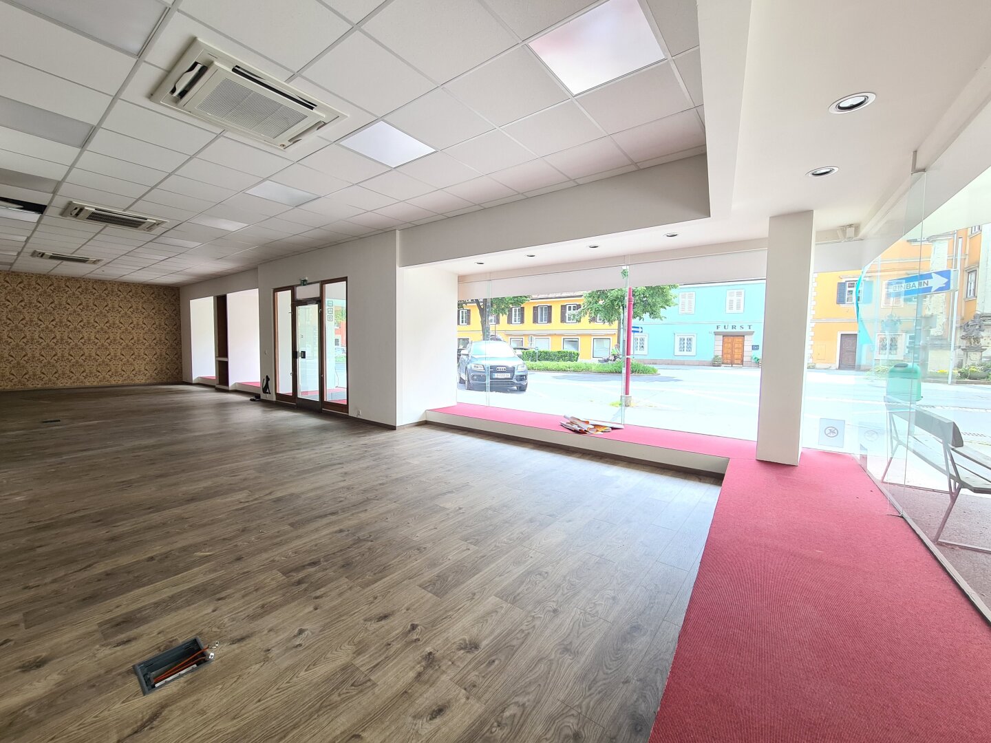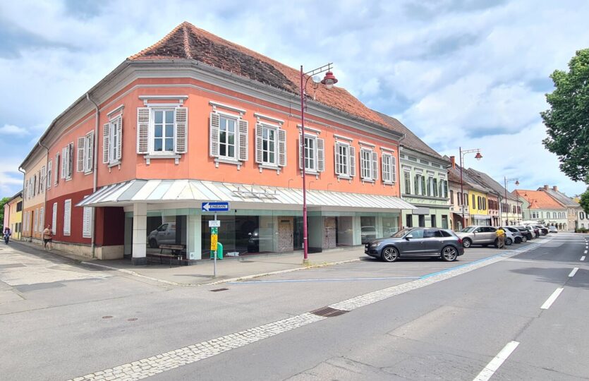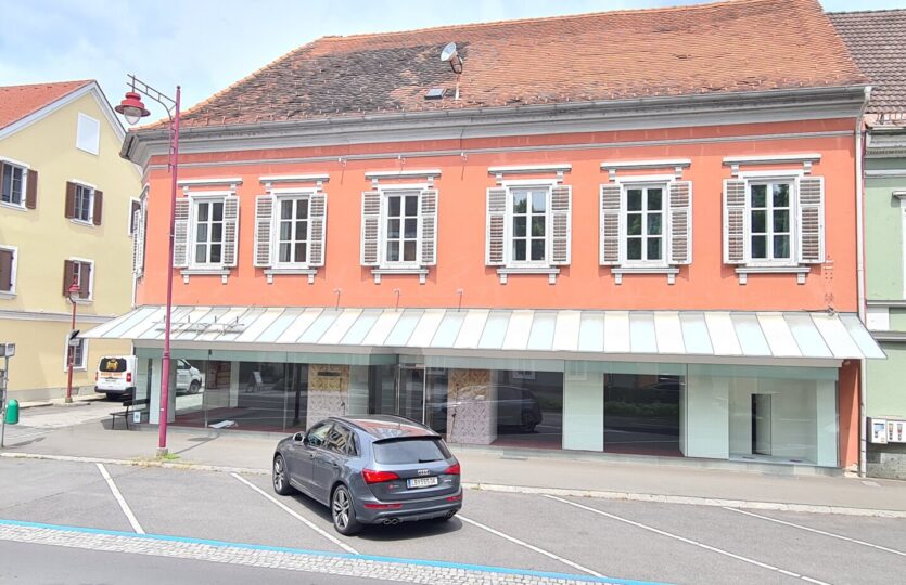 Großzügige Geschäftsfläche mit insgesamt 158m² Nutzfläche direkt am Hauptplatz von Mureck samt überdachter Schaufensterfront.