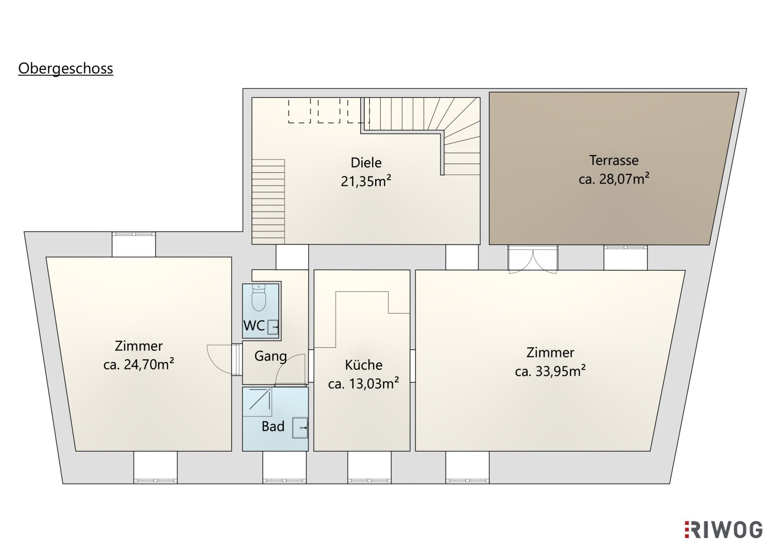 Auf drei Ebenen verfügt das Haus ca. über 230m² Wohnnutzfläche und eine knapp 28m² große, windgeschützte Terrasse mit