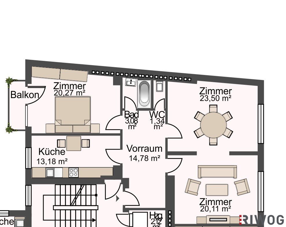 Die derzeitige Aufteilung der Wohnung ließe sich einfach umgestalten somit wäre z.B. ein weiteres Schlafzimmer oder auch eine Wohnküche sind möglich – lassen Sie Ihrer Phantasie freien Lauf.