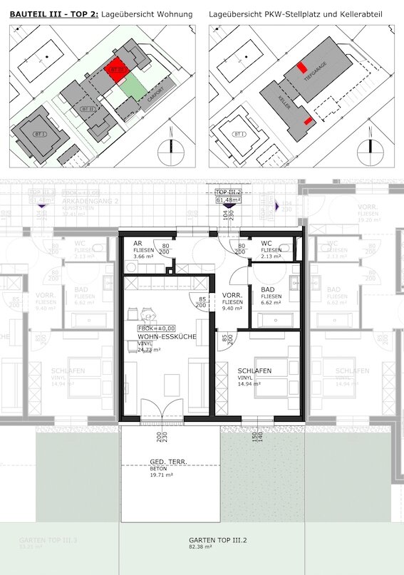 * Größen: ca. 61 m2 (1 Schlafzimmer) und ca. 107 m2 Wohnfläche (3