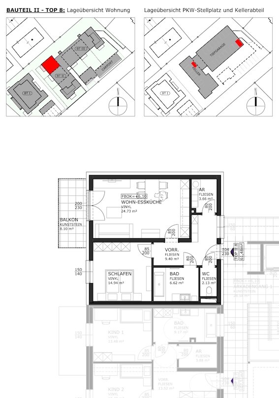 * Größen: ca. 61 m2 (1 Schlafzimmer) und ca. 107 m2 Wohnfläche (3