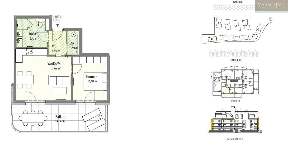 Dieses stylische Apartment befindet sich im 2. Obergeschoß eines gerade fertiggestellten Neubaus am Kuchelauer Hafen direkt bei der Donau.
