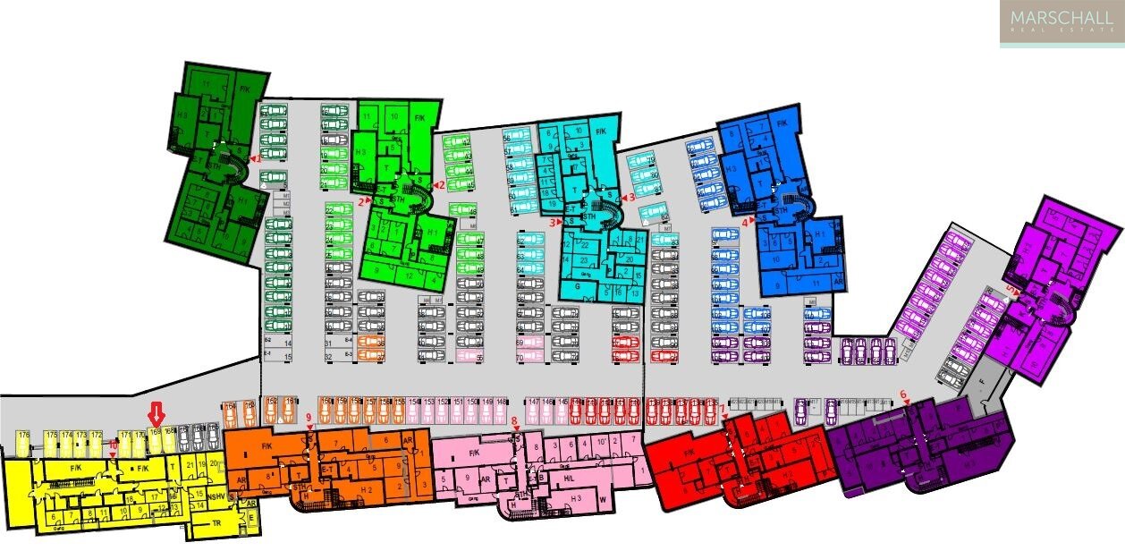 Das helle Apartment besteht aus einem Vorzimmer, einem Badezimmer mit Doppelwaschbecken, Dusche und WC, einem Abstellraum mit Waschmaschinenanschluss, einem Wohnzimmer mit offener Küche sowie einem Schlafzimmer. Vom Wohnzimmer