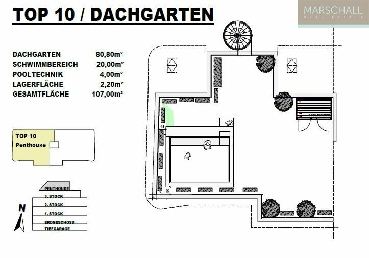 Dieses luxuriöse Penthouse befindet sich in einem eleganten, neu errichteten Haus mit nur wenigen Apartments in außergewöhnlich schöner Aussichtslage direkt am Waldesrand. Es erstreckt sich über zwei Etagen, verfügt über einen sensationellen Dachgarten mit Pool und ist südwestseitig ausgerichtet.